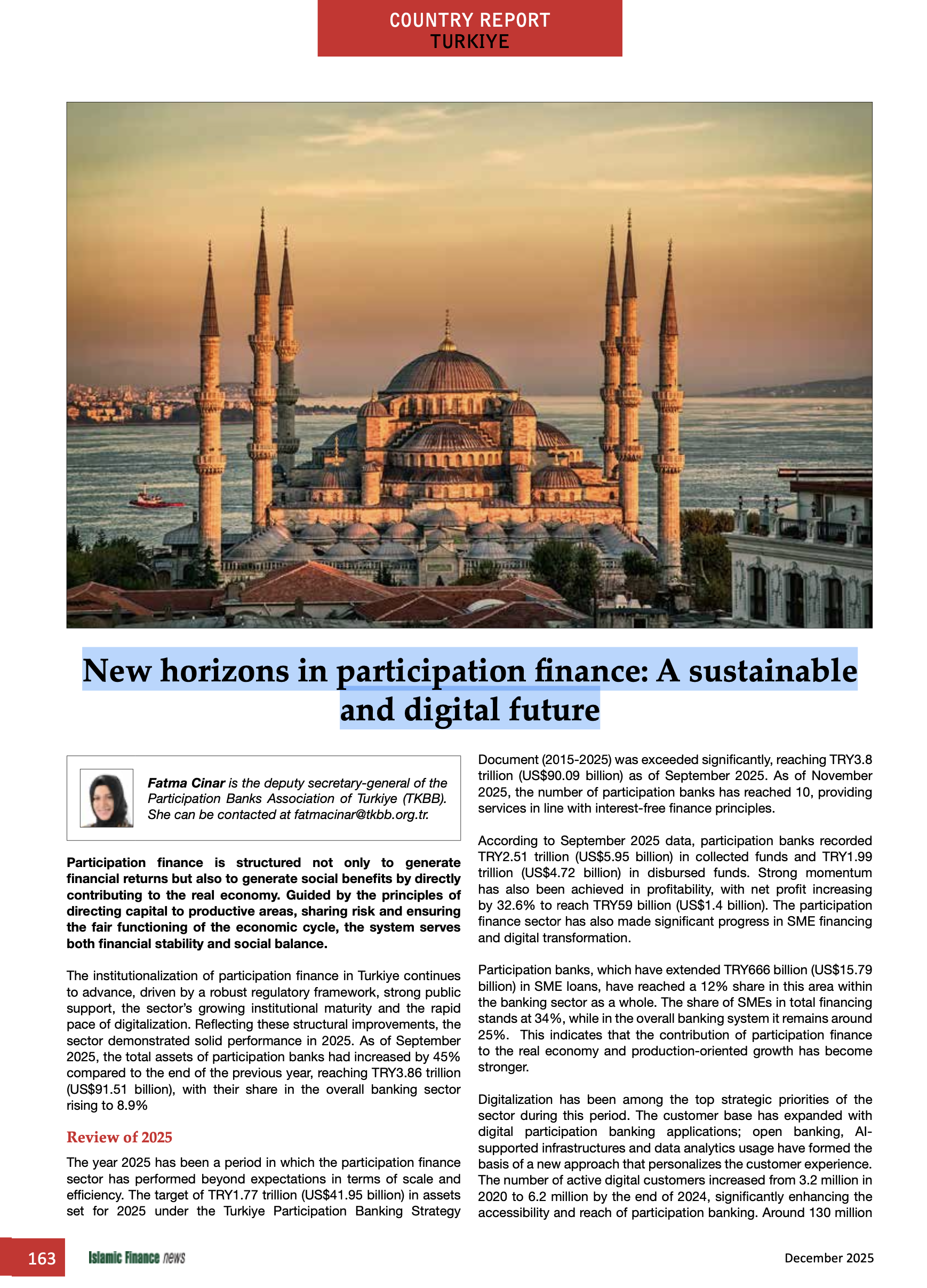 Read MoreThe 2024 IFN Annual Guide, which includes important developments in the Islamic finance sector and ecosystem activities, was published. Fatma Çınar, Director of the Participation Banks Association of Türkiye (TKBB), shared the developments in the participation banking sector in Türkiye and the projections for the upcoming years with the readers.